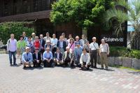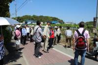 ~関西支部では、毎年5月の第3土曜日に見学会を実施しています。昨年は、池田市にある日清食品の「インスタントラーメン発明記念館」と小林一三の「逸翁美術館」と「小林一三記念館」でした。今年は、5月17日(土)に羽曳野市にある「河内ワイナリー」で26名(うち奥様2名)が参加、集合場所の近鉄南大阪線「駒ヶ谷駅」に揃いました。当日は、みなさんの日頃の行いよく最高の天気でした。まず、ワイン館の金銅商店の4代目社長の案内で、さわやかな風の中ブドウ畑の見学、使われている種類は「デラウエア」と「マスカットベリーA」、栽培法は、垣根栽培と棚栽培であることの説明を聞きました。