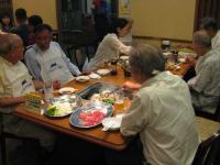 ~今回は名誉教授の川端先生、児玉先生、福留先生、現役教官の潮崎先生、OBの檀豊隆氏(昭和40年卒)、諸岡安名氏(同57年卒)、梅原晋氏(同59年卒)、それに事務局の平井彰(同55年卒)が参加しました。