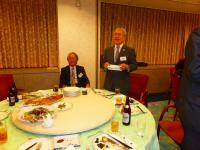 ~ 引き続き懇親会が開催され、貞包副支部長の挨拶・乾杯で参加者の交流が始まった。(写真は高山会長と貞包副会長)