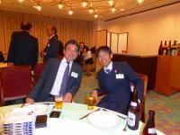 ~初参加となった平成元年卒の原賢大氏(九電)、10年卒の大原俊範氏(大分県庁)がスピーチで今後の継続参加を宣言すると、先輩達の大喝采を浴びた。