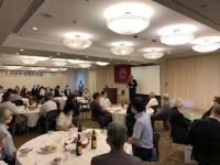 総会終了後の時間を利用して九大フィルハーモニー・オーケストラの東京特別演奏会のPR、そして懇親会では、中野健二郎会長の挨拶に続き、石橋達朗総長の挨拶と九州大学の取り組みなどのお話があり、松﨑昭副会長の発生で乾杯した後、食事を伴う懇親会となりました。