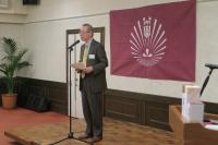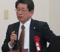 来賓5名(荒殿九大理事・副学長、相原九大総務部同窓生・基金課長、大塚九大総務部同窓生・基金課同窓生連携係、保坂筑後地区九大同窓会副会長、福田筑後地区九大同窓会副会長)をご紹介した後、まずは荒殿様からご挨拶いただきました。
