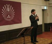 そして、いよいよお楽しみの懇親会です。レストランだいふく5階の総会・講演会場から、4階の宴会場に場所を移しました。冒頭のご挨拶は、蓮尾勇次副会長(S50工学部卒)です。司会は幹事の山田(S61文学部卒)が務めました。
