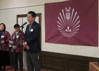 懇親会では、首長や企業代表者の会員から、「ひと口話し」で地域の話題などご紹介いただいています。今回は創業50周年を迎えた有明新報社の大賀茂功代表取締役社長(S63経済学部卒)にお願いしました。