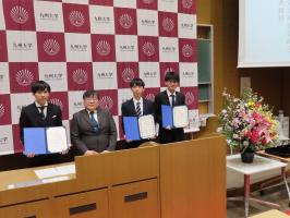 (写真:左より,大高さん,鵜林学科長,曹さん,中鸖さん)