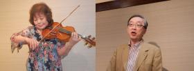 一段落ついたところで、南里君が福岡市医師会オーケストラの紹介をかねてピオラを演奏してくれました。