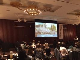 懇親会では、まず来賓の九州大学理事・山縣由美子様より壮大な伊都キャンパスについて映像とともにご紹介をいただきました。その後、福岡同窓会会長貫正義様(昭和43年・経済学部卒)の乾杯のご発声により華やかに開会いたしました。キャンパス移転後の節目にあたっていたこともあり、理事有志で作成した箱崎キャンパスの歴史、建物を振り返るスライドショーを上映し、その後、参加者の方から、箱崎キャンパスの思い出についてスピーチをいただき、みなで懐かしい思い出を共有いたしました。