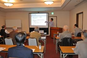 ~関西支部恒例の秋の行事「勉強会」が、11月15日(土)午後2時より、心斎橋駅近くの「ハートンホテル南船場」にて行われました。今回の講師は、平成8年経済学部卒の藤川昇悟氏(阪南大学経済学部准教授)、演題は、「日本のモノづくりは生き残れるのか?―自動車産業をケースとして―」でした。聴講者21名は、藤川氏の詳細なデータと実地調査に基づいた緻密な説明に聞き入り、あっという間の1時間30分でした。