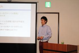 ~内容は、グローバル化が進展していく産業界において、自動車産業を例として、日本の製造業が生き残れるかという大変興味深いテーマについて、統計データに加え、藤川氏が実際に中国に滞在して確認した、自動車産業の現場の生の調査結果を基にした現状と将来についての持論を展開されました。