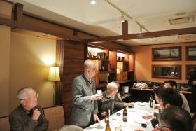 ~勉強会後終了後の3時30分から、懇親会は鈴木顧問(昭和33年卒)の乾杯で始まり、