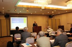 ~第二部は貫正義 同窓会長(九州電力会長・昭和43年卒)から、「電気事業をめぐる課題」というテーマでご講演いただきました。その中で原子力発電所の再稼働の問題、太陽光発電等の代替エネルギーの問題、電力会社の経営努力の現況等電力会社の抱える様々な課題、展望などについて具体的な数字を交えて、他では聞けないような興味深いお話をお伺いすることが出来ました。