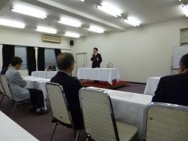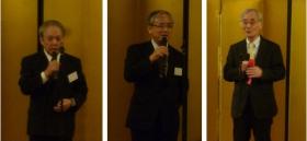 さらに続いて、会員の中から植木理事(前大川市長・S48農学部卒)、森山良一氏(帝京大学福岡医療技術学部副学部長・S44法学部卒)のひと口話を伺いました。植木理事は大川市長2期8年の市政を振り返り、行財政改革の取り組みなど述べられました。森山氏は来年4月に大牟田市岬町にオープンする新キャンパスとそこで展開される研究・教育の展望を紹介されました。