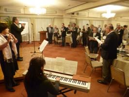 伴奏はフルート中尾弘子さま、キーボード金子亜都子さま、斉唱のリード役は議長も務めていただいた藤丸理事。